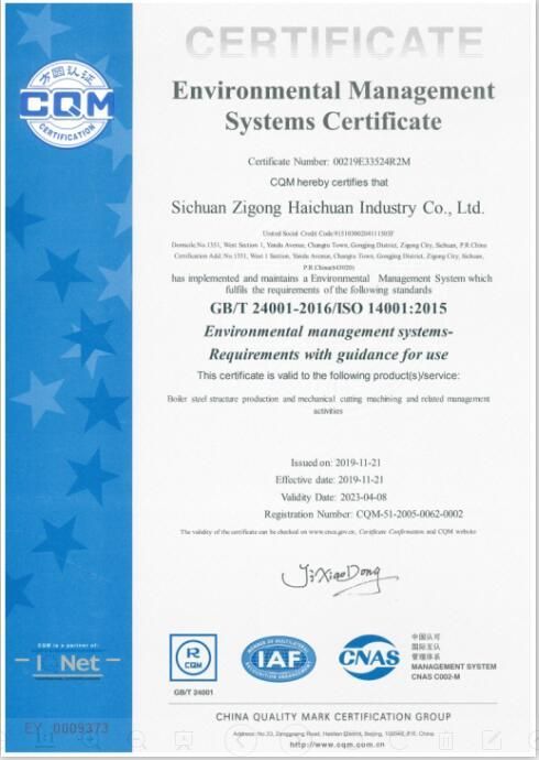 環(huán)境管理體系認(rèn)證證書(英文版)